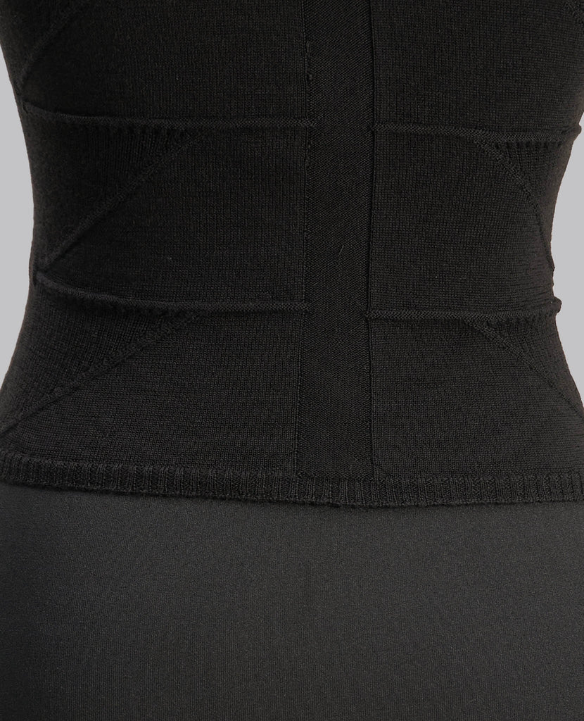 - KNIT PARALLEL LINES RUNNING HORIZONTALLY ACROSS THE TORS, FINISHING IN A SEMI TRANSPARENT TRIANGULAR RIBBED MOTIVO AT THE SIDE BODY